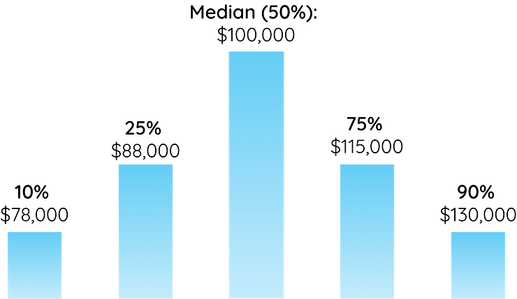 - 25th Percentile: Early-career professionals, approximately $88,000.